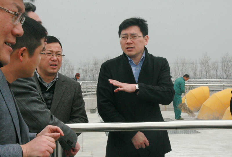3月29日上午,縣委常委金曉明到江濱水處理公司察看污水集中預處理工程(一期)進水情況,集團公司領導張則再陪同。