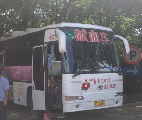 一大早,市中心血站的獻血車早早地??吭诹斯巨k公大樓前的樹蔭下,一樓會議室內也早已人頭攢動,員工們正在井然有序地填寫獻血表格,依次進行著初檢。