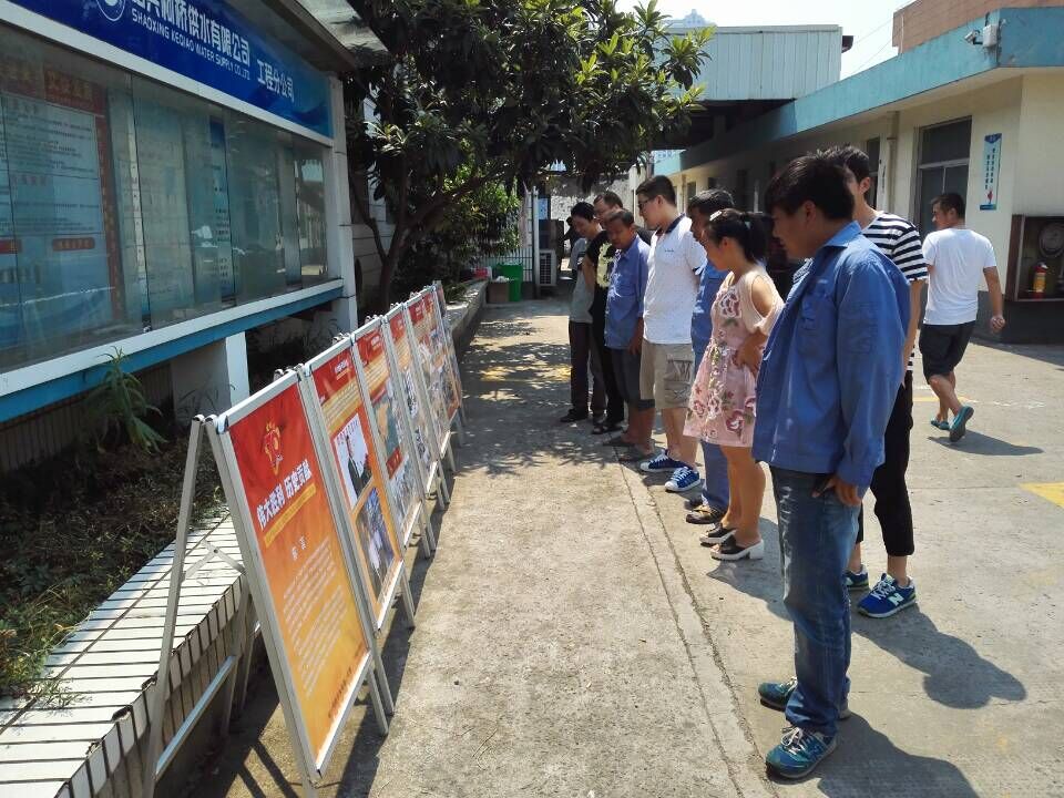 在“9月3日中國人民抗日戰(zhàn)爭勝利紀(jì)念日”到來之際,供水公司通過多種形式開展宣傳和紀(jì)念活動。一是制作《偉大勝利、歷史貢獻(xiàn)》抗日戰(zhàn)爭勝利宣傳展板,分別以全民族抗戰(zhàn)、中流砥柱、東方主戰(zhàn)場、侵華日軍暴行、偉大勝利、珍愛和平等主題反映中華民族抗日戰(zhàn)爭,并在公司下屬7個支部之間進(jìn)行巡展,讓廣大干部職工銘記中國抗日戰(zhàn)爭的歷史;二是以部門為單位,組織學(xué)習(xí)《中國抗日戰(zhàn)爭70問》和《抗戰(zhàn)記憶》,讓廣大干部職工深刻理解抗日戰(zhàn)爭的偉大意義;三是利用中午午休時間,以支部為單位,組織廣大黨員干部觀看抗日戰(zhàn)爭影片《南京,南京》。通過主題宣傳,弘揚偉大抗戰(zhàn)精神,讓廣大職工銘記歷史、珍愛和平。