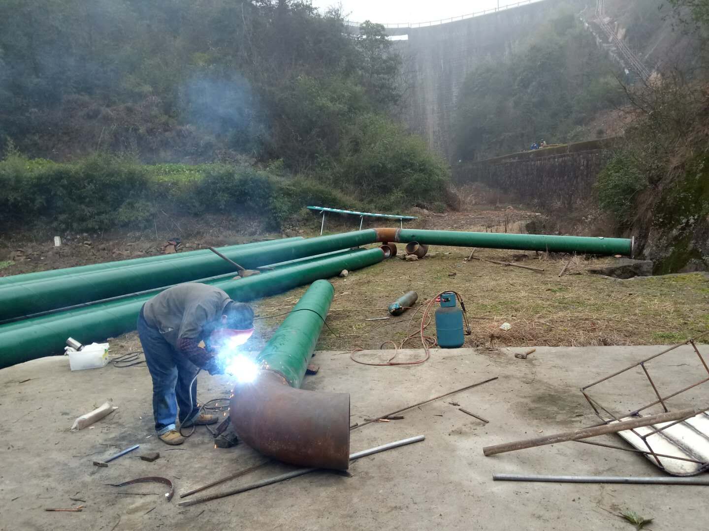 為保證鵝塢水庫汛期正常泄洪,避免泄洪時(shí)水廠無法正常制水現(xiàn)象,經(jīng)公司領(lǐng)導(dǎo)與平水鎮(zhèn)水利站人員多次踏看,結(jié)合鎮(zhèn)政府要求,柯橋供水公司決定出資60萬元,安裝一條總長(zhǎng)120米、口徑為DN400的虹吸管。該工程自12月進(jìn)場(chǎng)后,目前已完成搭跳、碎石子清理等前期準(zhǔn)備和虹吸裝置的基礎(chǔ)澆筑工作,預(yù)計(jì)在春節(jié)前完工。該工程的建成將徹底消除稽東水廠的水源斷供隱患,提高了安全供水保障。